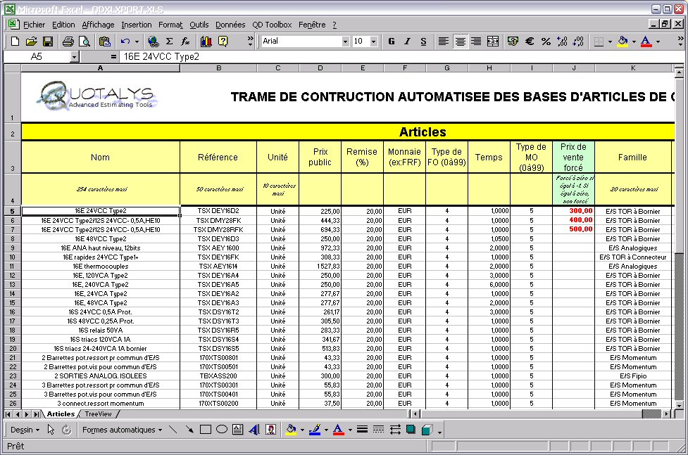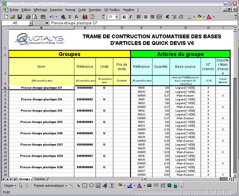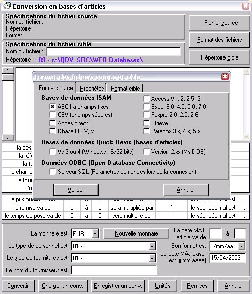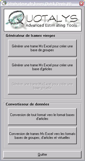 pour les bases d'articles Quick Devis dispose d'un outil de conversion
