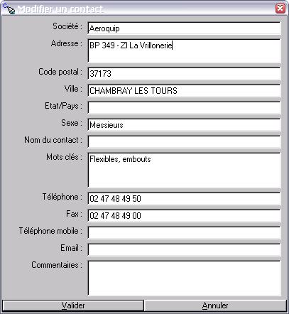 est vivement conseillé de remplir au minimum les champs SOCIETE, CODE POSTAL et