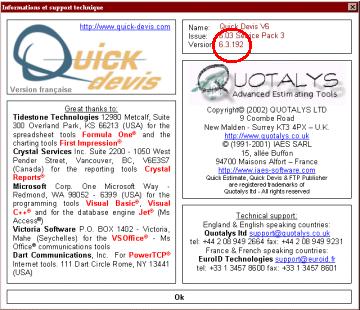 connaître le numéro de version précis de Quick Devis® appelez la fonction