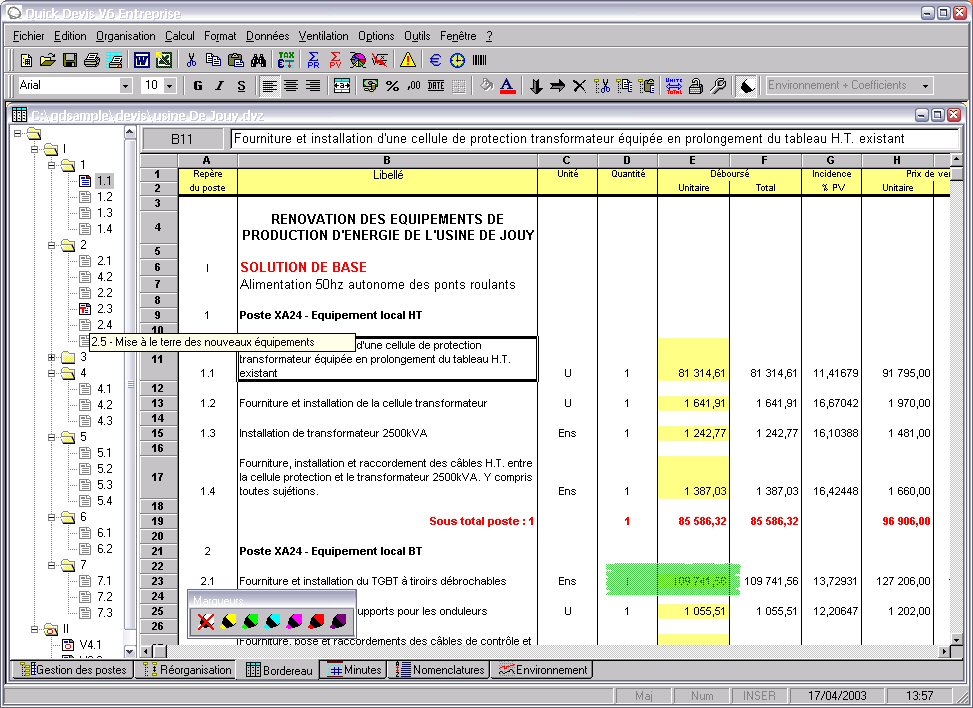 compte de manière dynamique les frais annexes et l'environnement des projets en